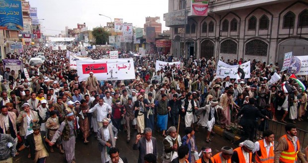 تظاهر آلالاف اليمنيين عصر اليوم انطلاقا من ساحة التغيير وسط العاصمة صنعاء للمطالبة بإسقاط الحكومة وإلغاء قرار رفع الدعم عن المشتقات النفطية ولائحة الأسعار الجديدة وتنفيذ مخرجات الحوار الوطني.