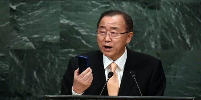 حول الأمين العام للأمم المتحدة بان كي مون خطابه في الجلسة الافتتاحية للجمعية العامة في دورتها الحادية والسبعين إلى مناسبة لكيل الاتهامات اللامسؤولة وإطلاق الادعاءات والأكاذيب بحق الدولة السورية التي تدافع عن شعبها ومقدراته ومكتسباته.