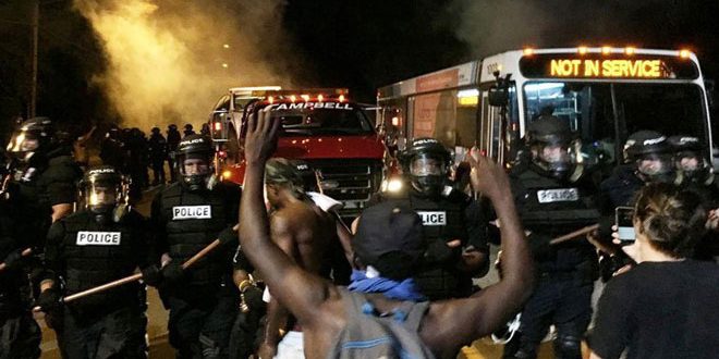 أصيب 12 شرطيا امريكيا جراء مواجهات اندلعت على خلفية مقتل أمريكي من أصول إفريقية بنيران الشرطة في مدينة شارلوت بولاية كارولاينا الشمالية شرق الولايات المتحدة.