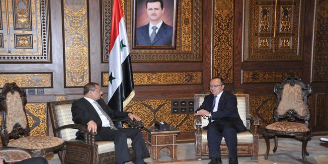 بحث اللواء محمد الشعار وزير الداخلية اليوم مع تشي تشيان جين سفير جمهورية الصين الشعبية بدمشق سبل تعزيز العلاقات والتعاون المتبادل بين البلدين الصديقين وتطويرها وخاصة في مجال مكافحة الإرهاب والجرائم المنظمة الواقعة على أمن الدولة.