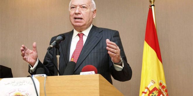 دعا وزير الخارجية الإسباني خوسيه مانويل غارسيا مارغاجو إلى منع تسهيل حركة الإرهابيين ومنع تمويلهم و تدفقهم إلى سورية مشددا على ضرورة الإسراع في الفصل بين الإرهابيين وما يسمى “المعارضة المعتدلة” في سورية .