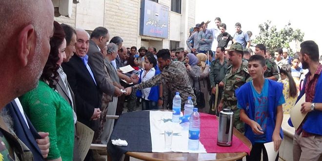 تقديرا لبطولاتهم وتضحياتهم في الدفاع عن الوطن أقام فرع درعا لاتحاد شبيبة الثورة وقفة تضامنية مع الجيش والقوات المسلحة في مدينة ازرع تضمنت تكريم عدد من العسكريين وتخريج دورة في الاسعافات الأولية.