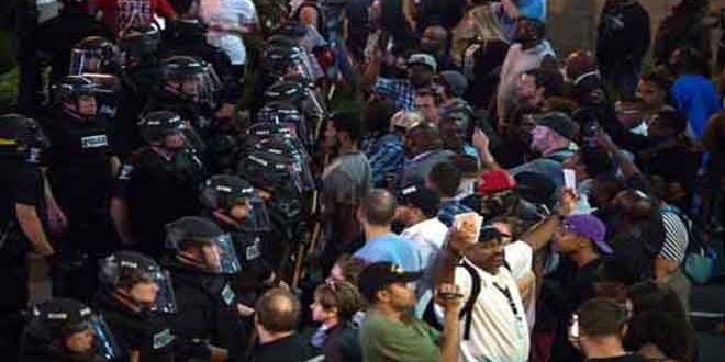 الاحتجاجات على عنصرية الشرطة الأمريكية بعد مقتل أمريكى من أصول افريقية برصاص الشرطة في مدينة شارلوت الأميركي