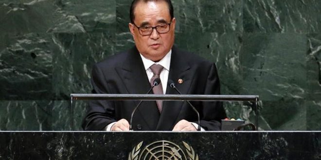 ونقلت رويترز عن وزير الخارجية الكوري الديمقراطي ري يونغ هو قوله أمس أمام الجمعية العامة للأمم المتحدة أن قرار بلاده تعزيز قدراتها هو “إجراء مشروع للدفاع عن النفس ضد التهديدات النووية المستمرة التي تنبع من الولايات المتحدة” مضيفا.. “ما دامت هناك دولة مسلحة نووياً على علاقات عدائية مع كوريا الديمقراطية فلا يمكن الدفاع عن أمننا القومي وعن السلام في شبه الجزيرة الكورية إلا من خلال رادع نووي يعتد به”.