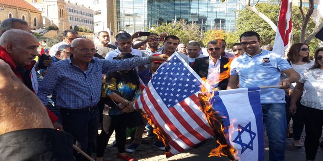 نفذت الجبهة العربية التقدمية وممثلو الاحزاب والقوى الوطنية اللبنانية اليوم وقفة تضامنية مع سورية أمام مقر الاسكوا وسط بيروت تنديدا بالعدوان الامريكي ضد موقع للجيش العربي السوري في ديرالزور في الـ17 من الشهر الجاري.