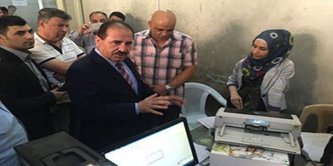 وخلال تفقده مديرية نقل ريف دمشق ومركز إجازات السوق في باب مصلى ومركز شارع خالد بن الوليد ومقرات مؤسسة الخط الحديدي الحجازي في نهر عيشة استمع الوزير حمود من العاملين إلى شرح مفصل عن سير العمل الحالي والخدمات التي يقدمونها للمواطنين والصعوبات التي تعترضهم مشيرا إلى ضرورة تطوير آليات العمل وتقديم التسهيلات اللازمة للمواطنين لإنجاز معاملاتهم.