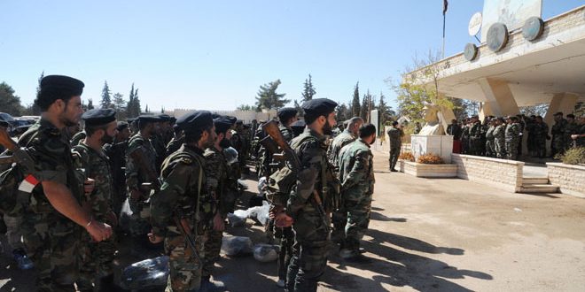 والتحق خلال الأشهر الماضية المئات من أبناء ريف دمشق الشرقي من الفارين والمتخلفين عن الالتحاق بخدمة العلم بقوات درع القلمون لتسوية أوضاعهم والمساهمة في الحرب التي يخوضها الجيش العربي السوري ضد التنظيمات الإرهابية.