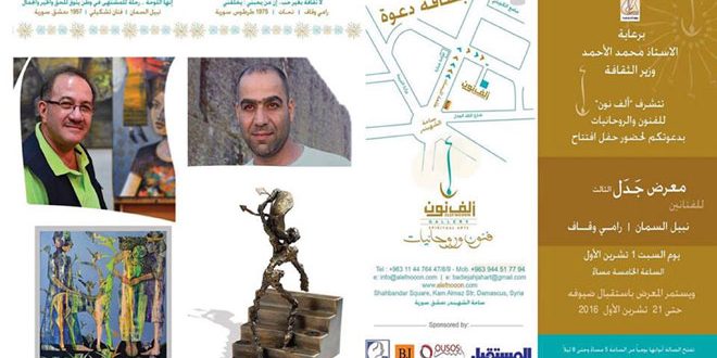 تحتضن صالة ألف نون للفنون التشكيلية جدلية جديدة من جدلياتها التي تعمل عليها من خلال المعارض المشتركة حيث تستضيف هذه المرة تجربة التشكيلي نبيل السمان والنحات رامي وقاف وذلك عند الخامسة من مساء السبت القادم.