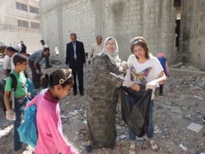 حملة نظافة في تجمع الحسينية للنازحين بريف دمشق