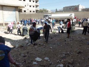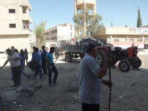 حملة نظافة واسعة في أحياء طريق السد بمدينة درعا