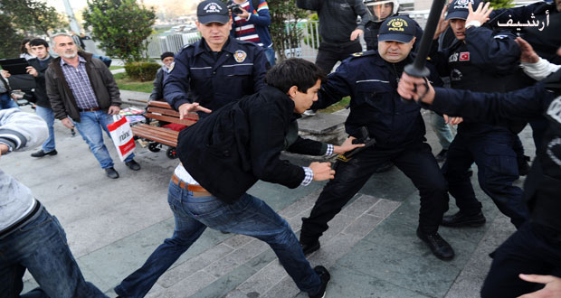 واستخدمت شرطة أردوغان الغاز المسيل للدموع و خراطيم المياه لقمع المتظاهرين وتفريقهم بالترافق مع تحليق الحوامات فوق المنطقة.