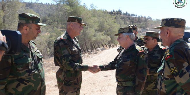 بتوجيه من السيد الرئيس الفريق بشار الأسد القائد العام للجيش والقوات المسلحة قام العماد علي عبدالله أيوب رئيس هيئة الأركان العامة للجيش والقوات المسلحة يرافقه عدد من ضباط القيادة العامة بجولة ميدانية تفقد خلالها القوات العاملة على اتجاه ريف حماة الشمالي واطلع على جاهزية الوحدات القتالية.