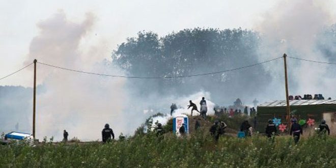 اندلعت صدامات اليوم في كاليه شمال فرنسا بين الشرطة ومتظاهرين يؤيدون المهجرين المقيمين في المخيم الذي تعتزم السلطات الفرنسية إخلاءه ما أسفرعن إصابة ثلاثة شرطيين.