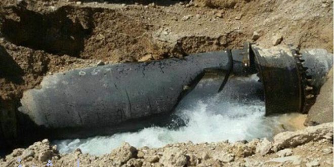 في إطار إجرامها الممنهج ضد البنى التحتية والمؤسسات الخدمية استهدفت التنظيمات الإرهابية التكفيرية خط مياه بردى بين منطقتي عين الفيجة وقرية دير مقرن بريف دمشق.