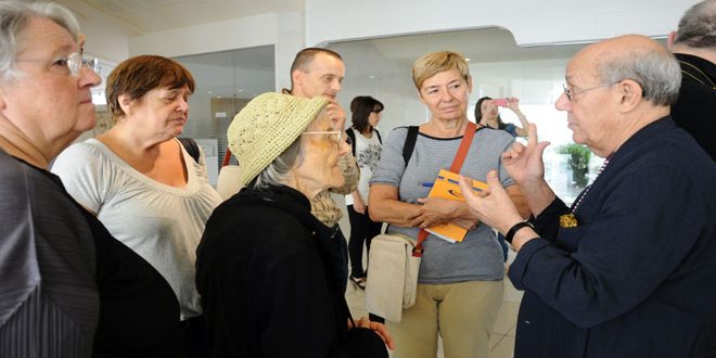 ثمانية عشر مواطناً أوروبياً جمعهم حب سورية ورفضهم لسياسات حكومات بلدانهم إزاء الأزمة في سورية فقدموا إليها ضمن مجموعة واحدة لزيارة الأوابد الدينية والتاريخية والمنجزات الحضارية في دمشق والوقوف على إبداع الإنسان السوري رغم سنوات الحرب الإرهابية.