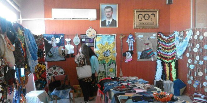 افتتح في المركز الثقافي العربي بمدينة شهبا بالسويداء اليوم معرض لإعادة تدوير الأقمشة المستعملة وتوالف البيئة بعنوان “بيئتي طريقي للإبداع”.