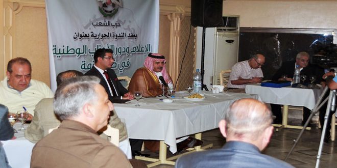 بدوره أشار الامين العام لحزب الشعب نواف الملحم إلى أن الاعلام الوطني في سورية استطاع رغم امكاناته المتواضعة مواجهة “إمبراطوريات الإعلام” التي حاولت النيل من سورية مستخدمة امكانات مالية ضخمة لضخ أخبار كاذبة وعارية من الصحة بغية تحقيق أغراضها المشبوهة في إضعاف سورية ودورها ومكانتها.