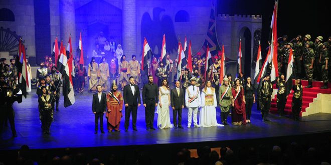برعاية نائب القائد العام للجيش والقوات المسلحة العماد فهد جاسم الفريج وزير الدفاع أقامت الجمعية السورية لدعم أسر الشهداء “تموز” مساء اليوم الأوبريت الغنائي الاستعراضي بعنوان “الدم..حبر الحق” تكريما لأسر الشهداء واحتفاء بذكرى حرب تشرين التحريرية وذلك على مسرح الأوبرا في دار الأسد للثقافة والفنون بدمشق.