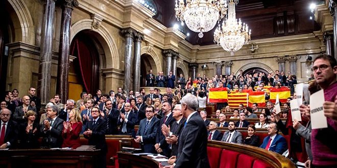 ويمثل هذا التصويت تحديا جديدا للقضاء الاسباني الذي اعلن قبل ساعات من ذلك عزمه على ملاحقة كل من رئيسة البرلمان الكتالوني كارمي فوركاديل وفرانشيسك هومس القيادي في الائتلاف الحاكم في برشلونة عاصمة الاقليم