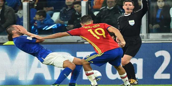 تعادل منتخب ايطاليا مع نظيره الاسباني بهدف لكل منهما في تصفيات كأس العالم 2018 بكرة القدم.