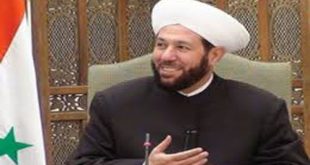 أكد سماحة المفتي العام للجمهورية الدكتور أحمد بدر الدين حسون أن وقوف روسيا الاتحادية إلى جانب سورية في مواجهة الإرهاب العالمي والتآمر الغربي الذي يستهدفها إنما يمثل وقوفا إلى جانب “قيم الحق والعدالة والسلام”.