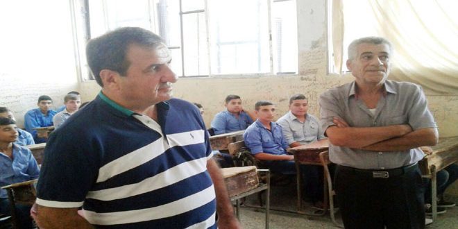 كما تفقد السالم واقع العملية التربوية في مدرستي الشهيد ظافر ديوب والشهيد رامي ديوب في كرسانا ووضع الطلاب بعد عودة المهجرين إلى منازلهم في قرى ريف اللاذقية الشمالي.