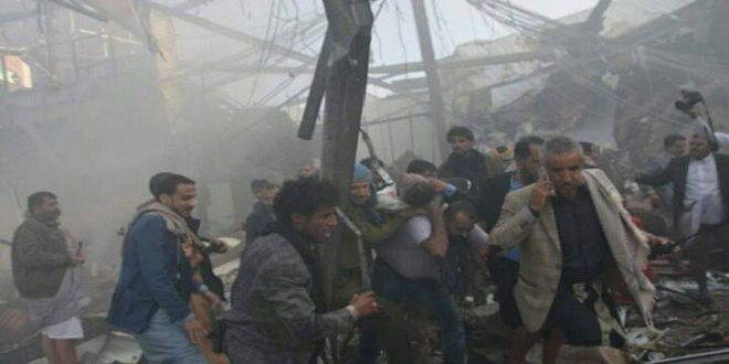 وكان النظام السعودي المدعوم من الولايات المتحدة الأمريكية وبعض الأنظمة الخليجية ارتكب مجزرة مروعة أول أمس فى صنعاء حيث قصفت طائراته مبنى يضم مجلس عزاء ما أسفر عن مقتل نحو 180 مدنيا وإصابة نحو 600 آخرين بجروح.