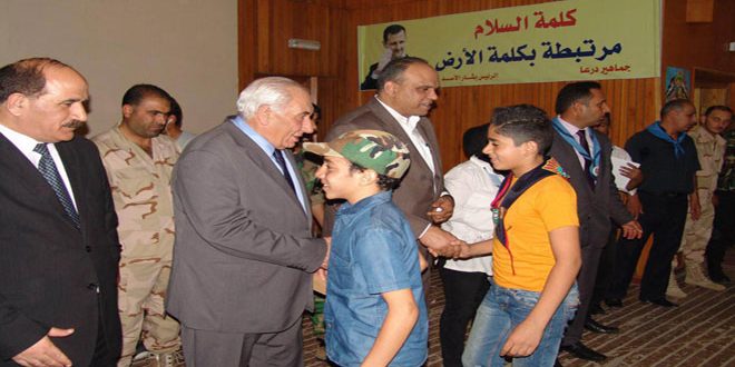 محافظ درعا محمد خالد الهنوس أشار إلى أن الاحتفال بذكرى حرب تشرين التحريرية يتزامن مع ذكرى تأسيس منظمة طلائع البعث التي ترعى الناشئة وتعمل على صقل مهاراتهم لايصالهم إلى الريادة و بالتالي المشاركة في بناء المستقبل لافتا إلى دور المشرفين والاهل في تربية الأبناء على حب الوطن.