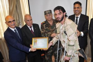 بالتعاون مع الإدارة السياسية ورابطة المحاربين القدماء كرمت حملة الفينيق السوري والخيمة السورية للمغتربين في أمريكا والمغترب السوري وسيم برصلي عددا من أبطال وجرحى حرب تشرين التحريرية وجرحى الجيش والقوات المسلحة وذوي الشهداء خلال فعالية “تشرين على درب الوفاء” التي أقاموها اليوم بمناسبة الذكرى الثالثة والأربعين لحرب تشرين التحريرية في قاعة الرابطة بدمشق.