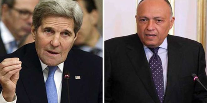 بحث وزير الخارجية المصري سامح شكري مع نظيره الأمريكي جون كيري في اتصال هاتفي اليوم تطورات الأوضاع في كل من سورية والعراق وليبيا بما في ذلك الجهود الخاصة بمكافحة الإرهاب في العراق.