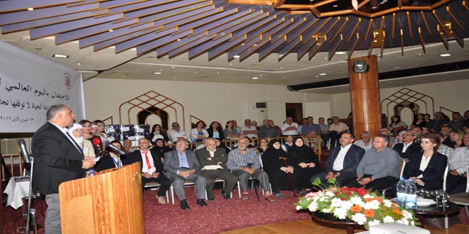 أقامت وزارة الصحة بالتعاون مع محافظة حمص اليوم احتفالية تكريمية للمسنين بمناسبة “عيد المسن العالمي” وذلك تحت شعار “إرادة الحياة لا توقفها تجاعيد ولا يؤخرها شيب” في فندق سفير حمص.