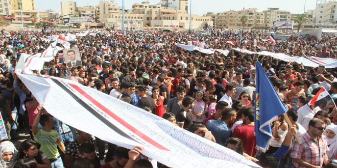 تجمع شباب الوحدة الوطنية في سورية يقيم فعالية التوقيع على أطول رسالة وفاء للوطن وقائده بطرطوس