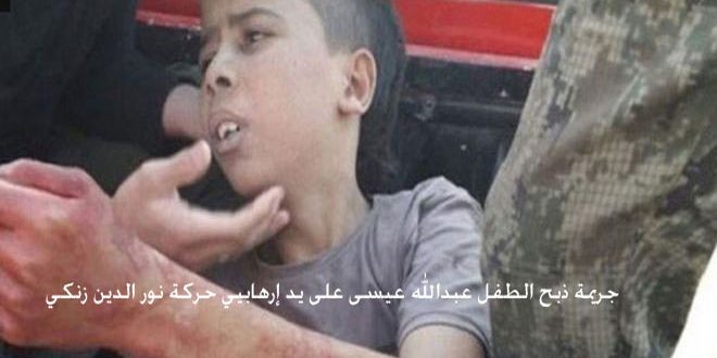وتابع الموقع: “إلا أن متابعي الأحداث في سورية والمخضرمين يعلمون أن هذه هي المجموعة نفسها التي قامت بذبح الفتى الفلسطيني (عبد الله عيسى) البالغ من العمر 12عاما بطريقة وحشية بعد اختطافه من أحد المشافى حيث قام ارهابيو (الحركة) بتصوير عملية قطع رأس الفتى بسكين صغيرة ونشر مقطع الفيديو على الانترنت”.