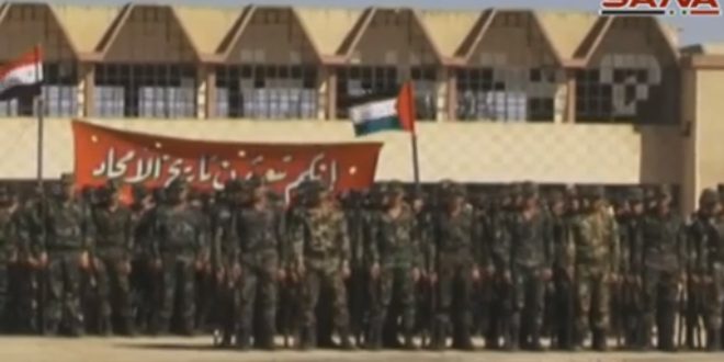 ثم بدأت عروض تخريج الدورة بتأدية الضباط الخريجين القسم العسكري وتضمن الاحتفال عروضا فنية للطيران الحربي عكست مهارة الطيارين السوريين وقدرتهم على خوض أعتى المعارك في استخدام سلاح الطيران ضد الإرهاب.