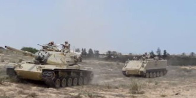 أعلنت القيادة العامة للقوات المسلحة المصرية أن طائرات سلاح الجو نفذت ضربات مركزة ضد مواقع الإرهابيين وتحصيناتهم في شمال سيناء تزامنا مع قصف مدفعي مركز على أهداف مماثلة في هذه المنطقة التي تنتشر فيها مجموعات مسلحة تنتمي إلى تنظيم “داعش” الإرهابي وجماعة الإخوان المسلمين الإرهابية.