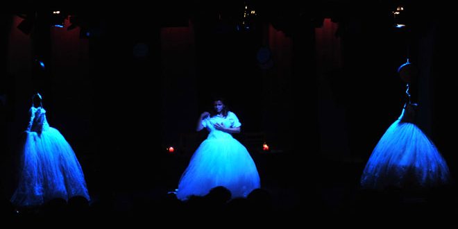 التجربة التي كتبها هيثم الطفيلي وأخرجها للمسرح هشام زين الدين اعتمدت على أداء الممثلة مروة قرعوني التي بدت في هذا العمل أكثر ميلاً إلى استخدام طبقات حادة من الصوت بمصاحبة رقصات ولفها كل من كاتب ومخرج العرض مع الأحداث المؤءلمة التي تمر فيها الشخصية مقتصدين في قطع الديكور التي اقتصرت هنا على نافذتين وطاولتين وكرسيين وساعات حائط معلقة وأثواب عرس سترقص معها قرعوني في مشهد قارب حلم الشخصية بالسلام والحب والانعتاق من واقع الحرب ومآلاتها على الإنسان البسيط العادي.