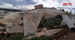 وذكر المهندس رفعت عطا الله رئيس دائرة الانتاج النباتى فى مديرية زراعة طرطوس فى تصريح لمراسل سانا أن الوحدات الارشادية تقوم بحصر الاضرار في البيوت البلاستيكية على ان تقدم تقريرها خلال اليومين القادمين.