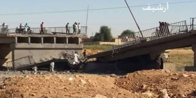 وأفاد مراسل سانا في دير الزور بأن غارات “التحالف” تسببت بتدمير جسر في بلدة الصور الواقعة على نهر الخابور في الريف الشمالي لمحافظة دير الزور وجسر في بلدة البصيرة الواقعة على نهر الفرات في الريف الشرقي للمحافظة بغية تقطيع أوصال ريف دير الزور على ضفتي الفرات.