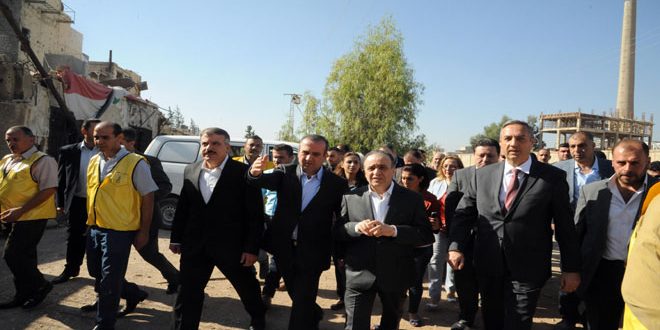 بدوره بين وزير الإدارة المحلية والبيئة أهمية إعادة تأهيل منطقتي حوش بلاس وفضلون بريف دمشق حيث تم وضع خطة لتنظيم كل الأعمال وإزالة العوائق المتعلقة بالطرقات من خلال التنسيق مع الجهات المختصة لافتا إلى بدء الورشات بإصلاح خطوط الصرف الصحي والمياه والشبكة الكهربائية وتقديم الدعم الكامل لإعادة إطلاق العمل بالمنطقة الصناعية ودوران عجلة الإنتاج بالشراكة مع الصناعيين.