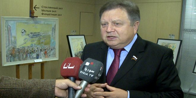 وقال البرلماني الروسي في مقابلة مع مراسل سانا في موسكو اليوم: “نصطدم اليوم في حلب بحالات إجرامية جديدة وخروقات للتهدئة ونسمع أن الجزء الأكبر من المسلحين لا يلتزمون بوقف العمليات القتالية ويواصلون إطلاق النار على المدنيين الراغبين في الخروج من الجزء الشرقي من المدينة”.