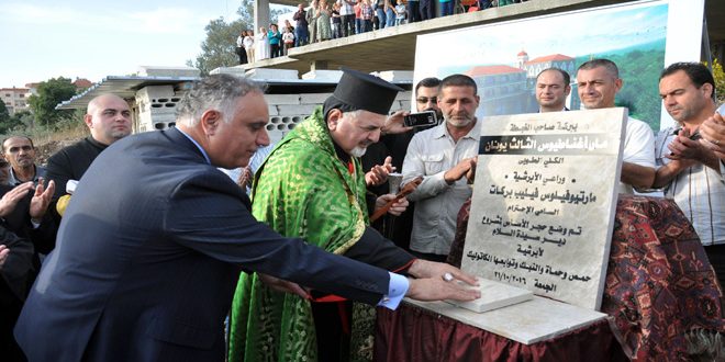 وخلال وضعه حجر الأساس لمشروع دير سيدة السلام في مرمريتا مساء اليوم بحضور فعاليات اجتماعية وسياسية وأهلية في منطقة وادي النضارة شدد البطريرك على “الحاجة الحقيقية إلى فاعلي السلام الذين يبنونه حجرا حجرا كي يعم سورية” مبينا أن الهدف من بناء دير السلام هو جمع أبناء سورية على المحبة والألفة.