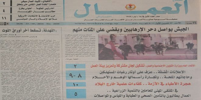 تضمن العدد الجديد من جريدة كفاح العمال عددا من المواضيع الثقافية والفكرية والسياسية وأخبار الجيش والقوات المسلحة وانتصاره على الإرهابيين في العديد من المناطق.
