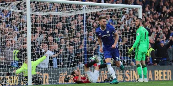فاز تشيلسي على ضيفه مانشستر يونايتد بأربعة أهداف دون رد في المباراة التي جمعتهما في ختام المرحلة التاسعة من الدوري الانكليزي لكرة القدم وافتتح تشيلسي التسجيل في الدقيقة الأولى من المباراة عبر بيدرو رودريغيز وعزز تقدمه بهدف ثان عبر غري كاهيل في الدقيقة 21 وأضاف الهدف الثالث عبر ايدين هازارد في الدقيقة 62 فيما سجل نغولو كانتي الهدف الرابع في الدقيقة 70.