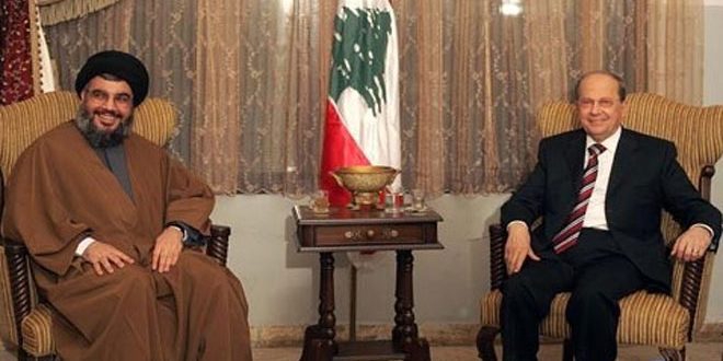 بحث الأمين العام لحزب الله السيد حسن نصر الله مع رئيس تكتل التغيير والإصلاح النائب العماد ميشال عون آخر المستجدات السياسية في لبنان والمنطقة وخصوصا ما يتعلق بالاستحقاق الرئاسي القائم في لبنان وضرورة مواصلة الجهود لإنجاحه في أفضل الأجواء الإيجابية الممكنة.