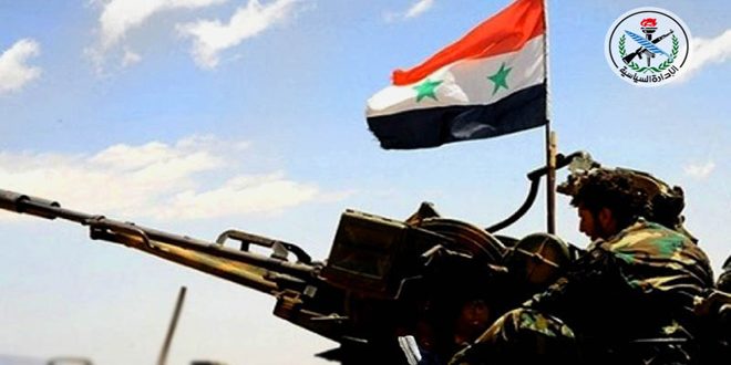 إلى ذلك نفذت وحدة من الجيش والقوات المسلحة رمايات مركزة على تحركات إرهابيي تنظيم “جبهة النصرة” وما تسمى “حركة أحرار الشام” في قرية السعن الأسود بريف حمص الشمالي.