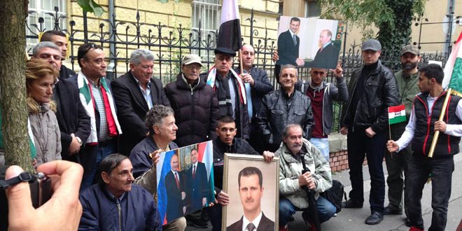 نظم عدد من الجمعيات السورية وهي جمعية سوا والهيئة الإدارية للاتحاد الوطني لطلبة سورية فرع بودابست وناشطون من الجالية السورية في هنغاريا وقفة تضامنية أمام السفارة الروسية في بودابست تقديرا لمواقف روسيا الداعمة لسورية وجيشها.