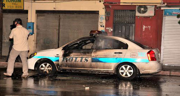 وأوضحت الصحيفة أن المتظاهرين ألقوا خلال المظاهرة زجاجات حارقة على إحدى مركبات الشرطة ما أدى إلى احتراقها كما رشقوا قوات الشرطة بالحجارة.