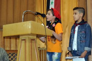 وتضمنت فعاليات الملتقى الذي أقيم تحت شعار “بالإرادة نواجه تحديات الحاضر ونصنع المستقبل” قصائد شعرية قدمها أطفال من طلائع البعث إضافة إلى أنشطة متنوعة منها منبر الإبداع رواد الفصاحة والخطابة وحلقة بحث حول اللغة العربية وأهمية المحافظة على اللغة العربية والتحديات التي تواجهها فضلا عن توجيه رسالتين قرأتهما الطفلتان شهد كعيد ونجيب فرحة لأطفال العالم باللغتين العربية والانكليزية.