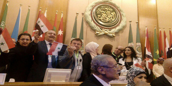 ورفع أعضاء الوفد المؤلف من 46 مشاركا العلم العربي السوري داخل مقر ما يسمى “جامعة الدول العربية” الذي أقيمت فيه فعاليات المونديال اليوم مشيرين إلى أن رفعه يأتي إصرارا وتأكيدا منهم على أنه العلم السوري الشرعي والوحيد ولا مكان لأي أعلام أخرى.