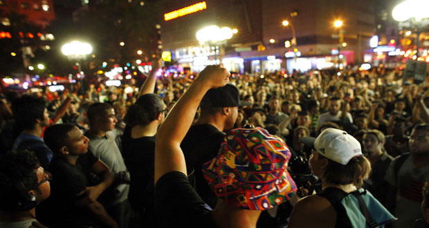 وذكرت وكالة الصحافة الفرنسية أن المتظاهرين رفعوا صورة اريك غارنر الذي قتل على يد الشرطة البيض وصورة مايكل براون الذي قتل ايضا برصاص شرطي في فرغسون بولاية ميسوري في التاسع من الشهر الجاري وحملوا لافتات تطالب بالعدالة للشخصين و”حياة السود ليست رخيصة” وطالب بعضهم بإلقاء القبض على الشرطي القاتل أحد مرتكبي الجريمتين.